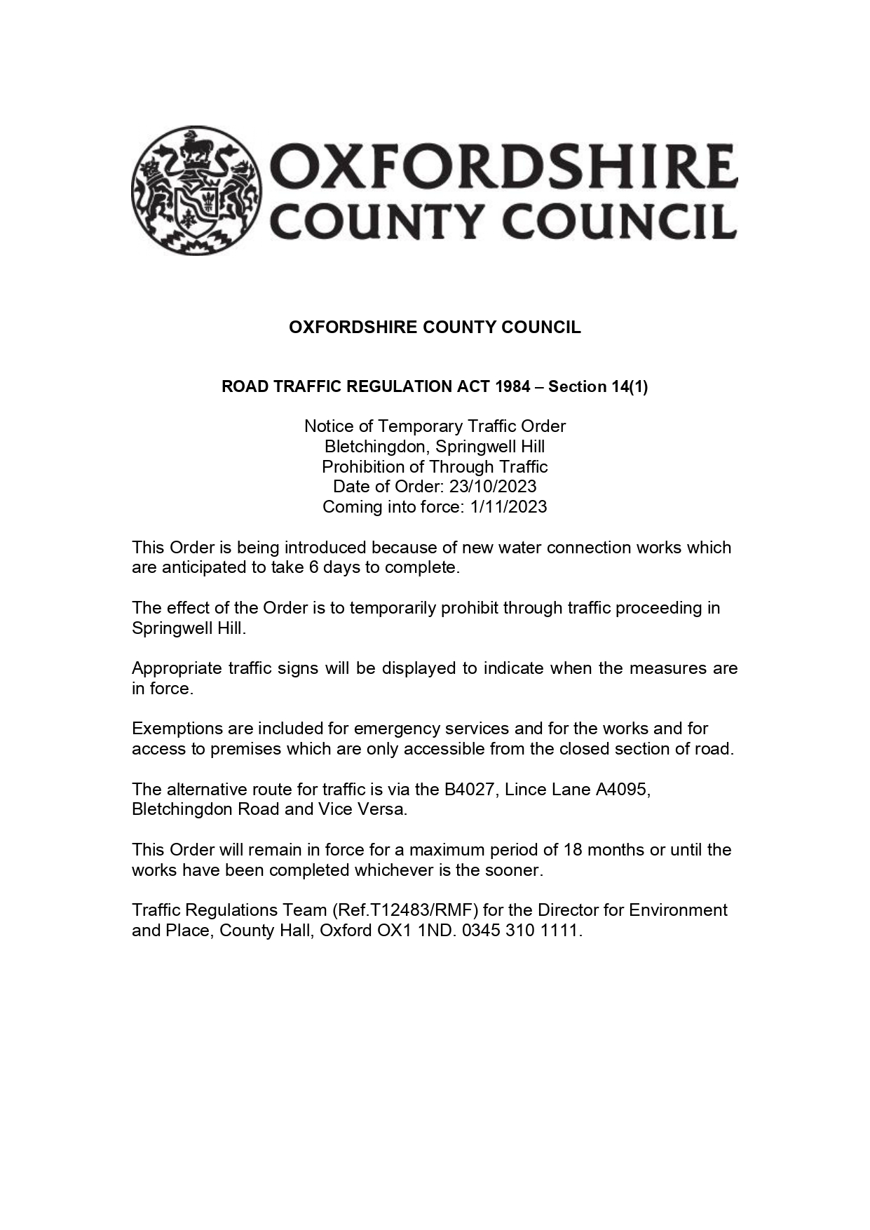 T12483 – Springwell Hill, Bletchingdon